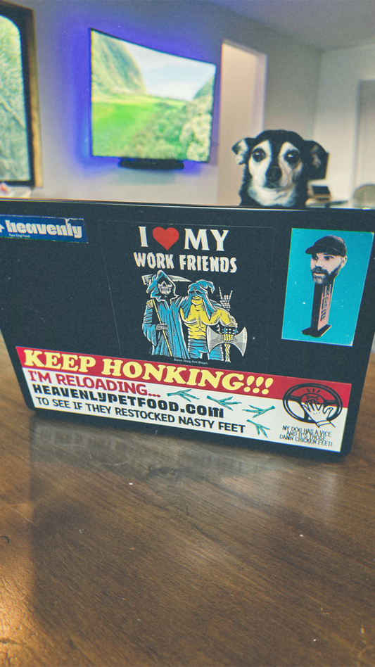 Why explain yourself when a sticker can do it for you. These are loud, funny, and very dog. Slap one on your car, your fridge, your forehead, or whatever flat surface is closest and let people figure you out from there!